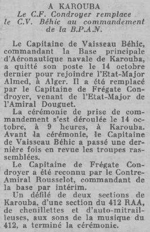 Capitaine de frégate le 1er mars 1956.