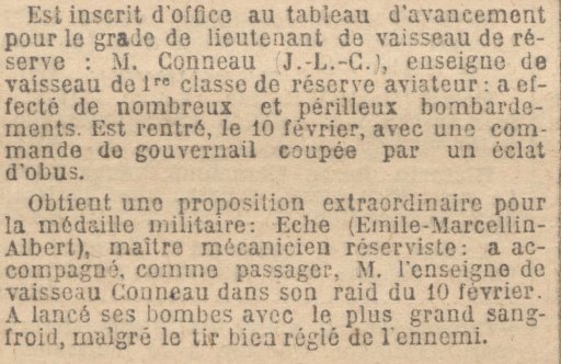 juillet 1915 : "A effectué de nombreux et périlleux bombardements,