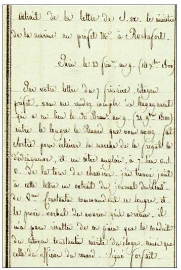 combat pendant 4heures et demi contre un cotre, lettre du ministre