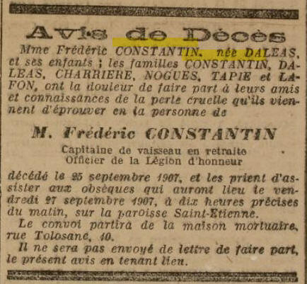 SAINT GAUDENS (Haute-Garonne) - Décédé le 25 septembre 1907 à