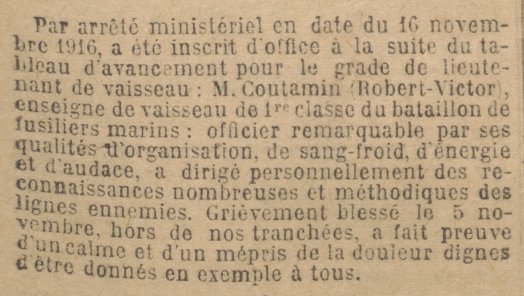 de la Marine en date du 16 novembre 1916 (J.O. du 18 nov. 1916, p.
