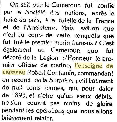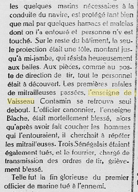 Second sur la canonnière "SURPRISE", il est cité à l'ordre de