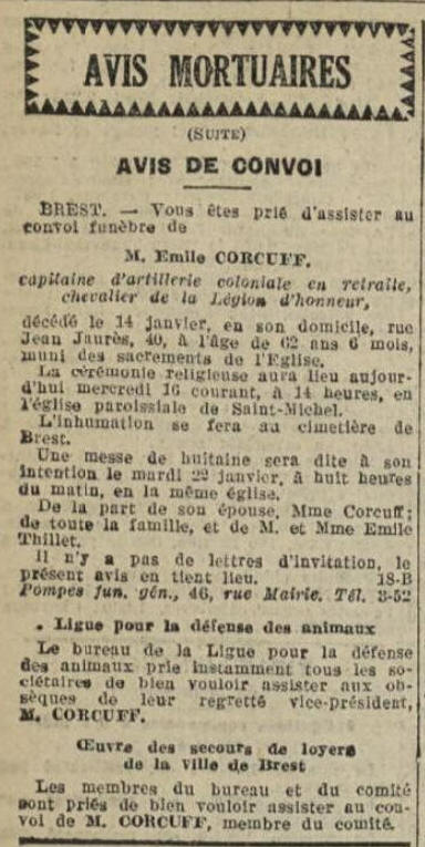 Extrait La Dépêche de Brest / 16 janvier 1929