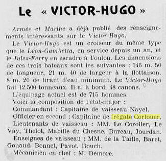 cuirassé "VICTOR-HUGO", Escadre de Méditerranée (Cdt Louis DUFAURE