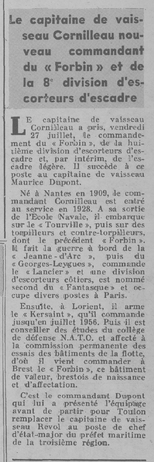 le 27 juillet 1962, chef de division de la 8ème D.E.E. à Brest avec