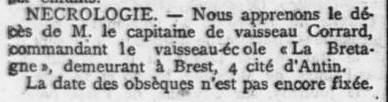 - Décédé le 17 septembre 1905 à BREST (Finistère)