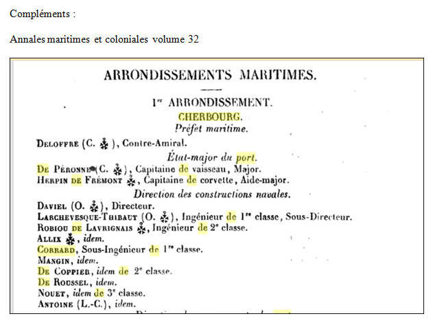 de 1ère classe le 7 aout 1858, en poste à Cherbourg
