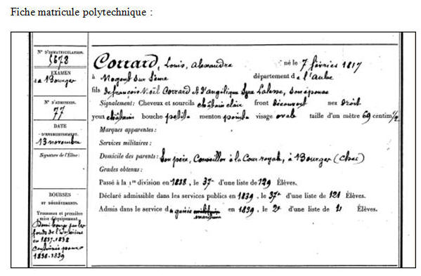 Polytechnique le 1er novembre 1837 avec le n° 77 et en sort avec le
