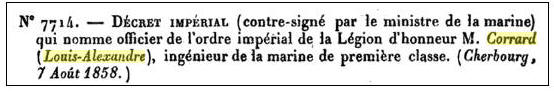 constructions navales à Cherbourg, en 1858, il est fait officier de