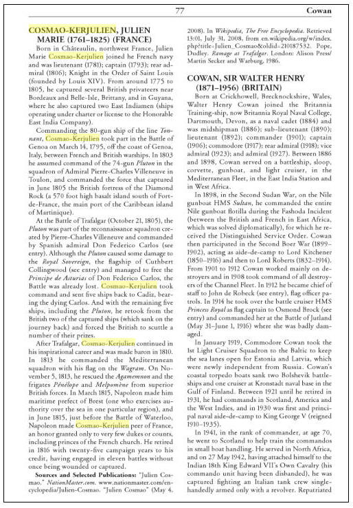 Sainte-Hélène, faisait grand cas du fait « que Cosmao aurait brisé
