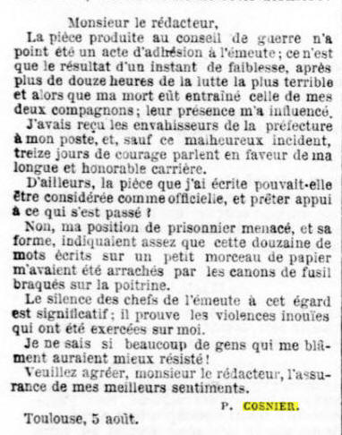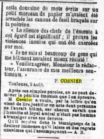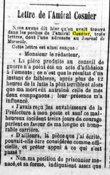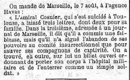 est envahie le 23 mars 1871, Cosnier résigne ses fonctions. Gaston