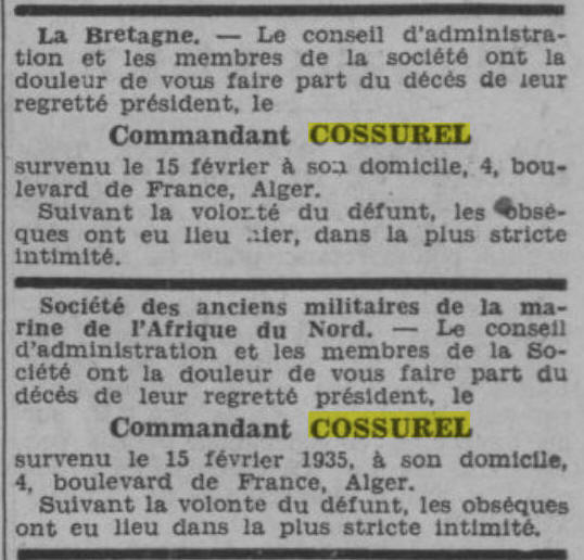 à ARRADON (Morbihan) - Décédé le 15 février 1935 à ALGER (Algérie)