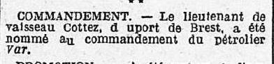 l'Armée navale la même année : "Second d'un torpilleur d'escadre :
