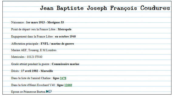 Rejoint les FNFL le 7 octobre 1940, matricule 10121FN40