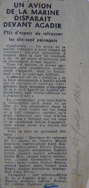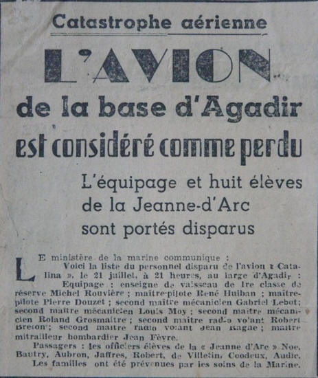 "JEANNE-D'ARC", il disparait avec l'hydravion PBY-5 Catalina dont il