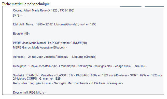 Né le 22 février 1905 à LIBOURNE (Gironde). Décédé le 27 juin 1993 à