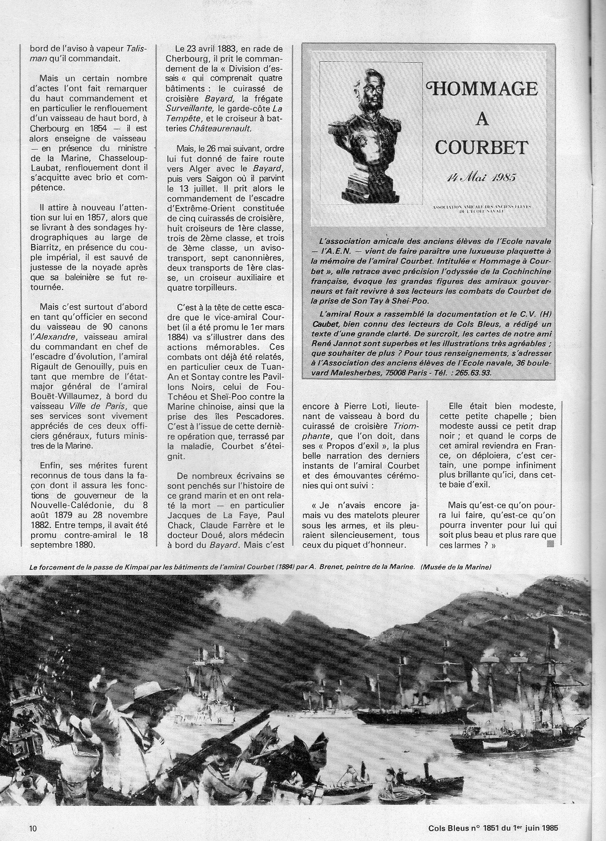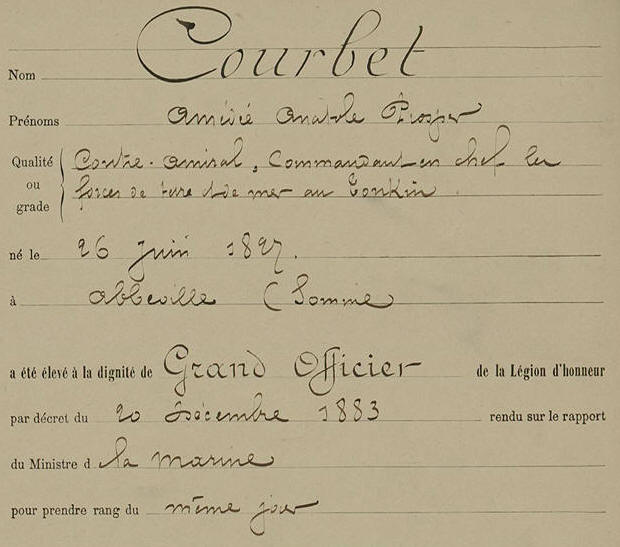 juin 1827, le futur amiral Courbet entra dans la Marine à sa sortie
