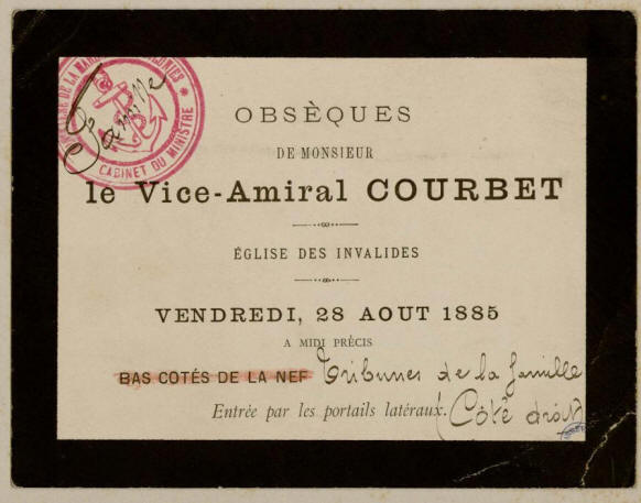 Courbet mourut à bord de son navire-amiral, le Bayard, en rade de