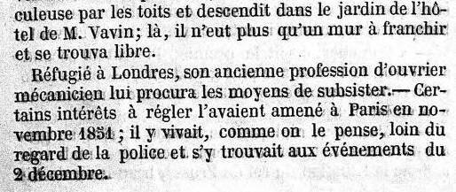 du 2 décembre 1851, exilé volontaire à LONDRES où il est tué lors
