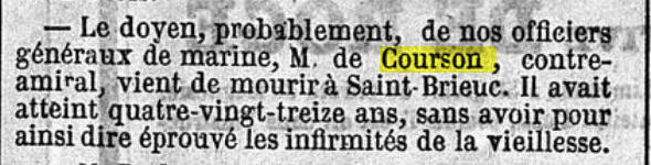 Frère de Jean Louis de COURSON de La VILLEHÉLIO, Administrateur