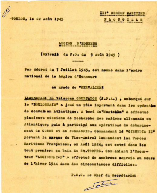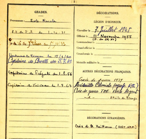 de vaisseau de 2ème classe le 1er octobre 1931; port CHERBOURG.