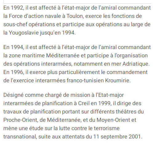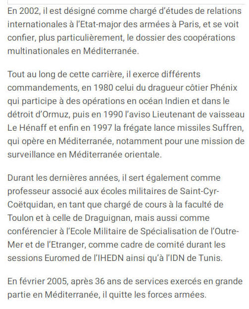 Quitte la marine en 2005 comme contre-amiral (2S).