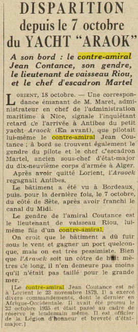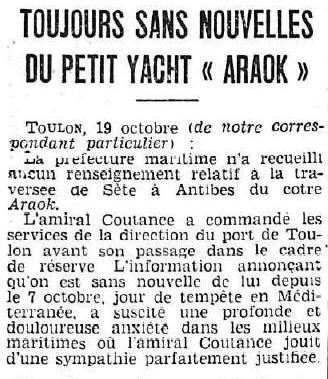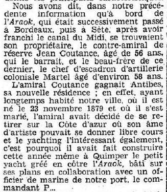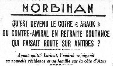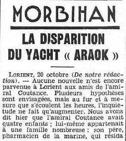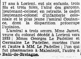 à BREST (Finistère) - Décédé fin 1936, disparu en mer au cours d'une