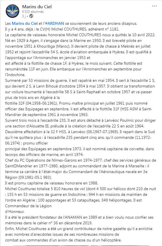 - Avril 1958 à Juin 1961 Flottille 32 F