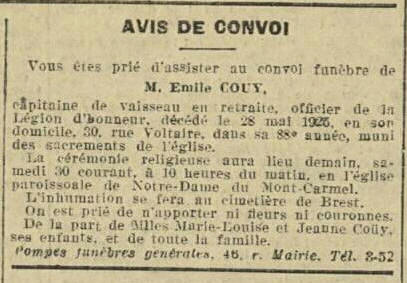 CAYENNE (GUYANE) - Décédé le 28 mai 1925 à BREST (Finistère)