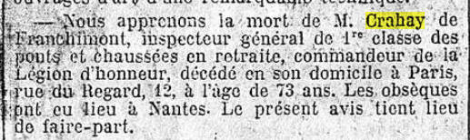 Ingénieur en chef de 1ère classe le 1er mai 1900, mêmes fonctions.