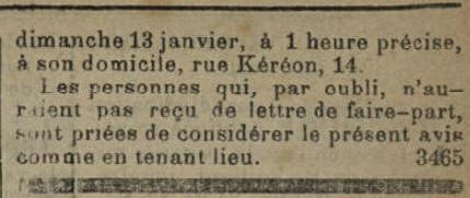 LAMBEZELLEC (Finistère) - Décédé le 11 janvier 1889 à BREST