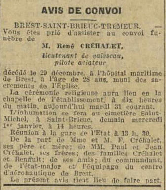 TREGUIER (Côtes d'Armor) - Décédé le 29