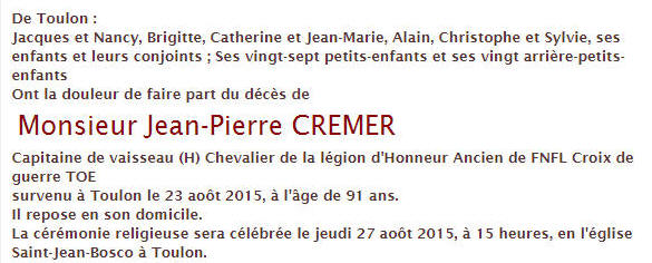 Né le 10 juillet 1924 à BOIS COLOMBES (Hauts de Seine) -