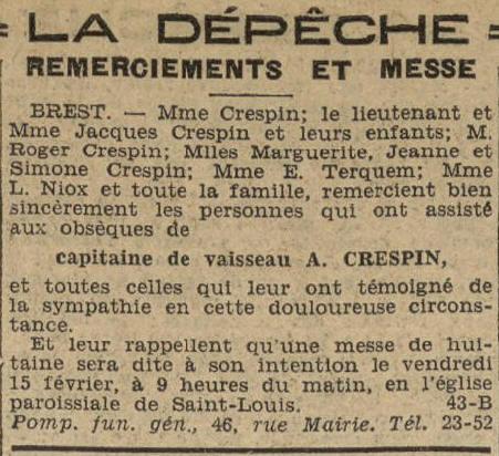 la Division d'instruction à BREST, puis à la mobilisation à la 2ème