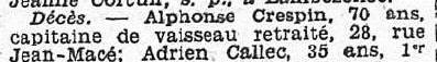 LANILDUT (Finistère) - Décédé le 8 février 1935 à BREST (Finistère)