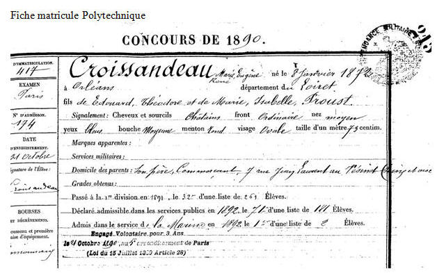 Élève de l'École polytechnique en 1890, opte pour la Marine.