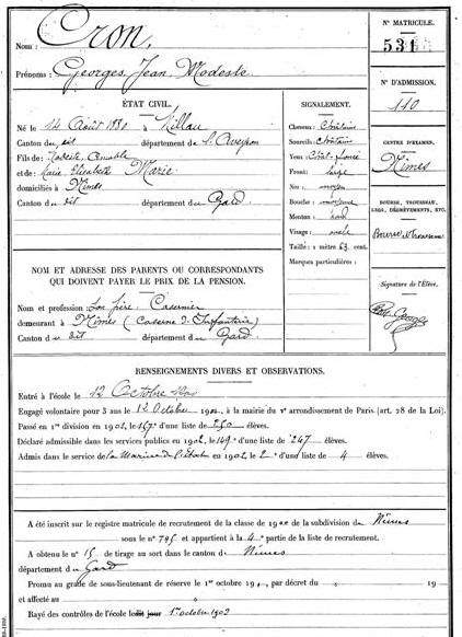 Élève de l'École polytechnique en 1900, opte pour la Marine.