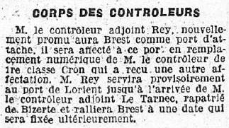 à TOULON. Contrôleur de 2ème classe le 29 août 1920; même