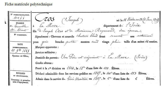 Fils de Joseph Cros, négociant (bonapartiste) et de Marianne REYMOND
