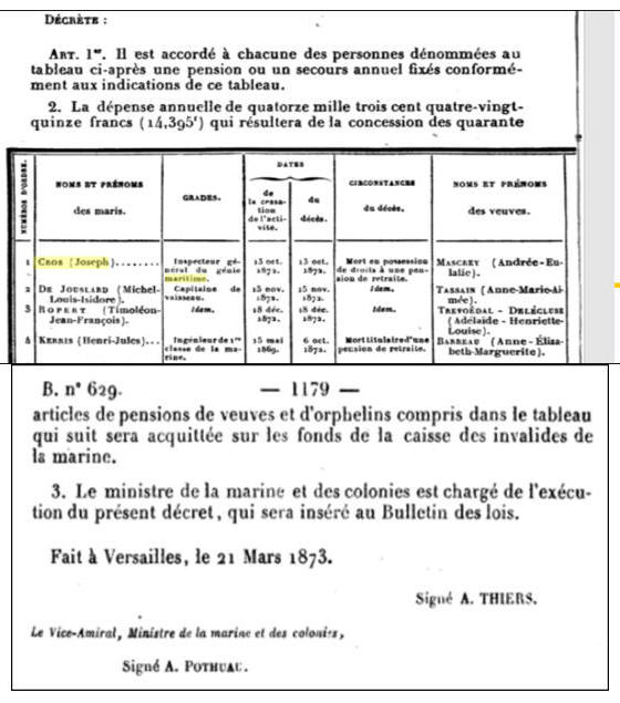 destinée à se veuve payée par la caisse des Invalides de la marine