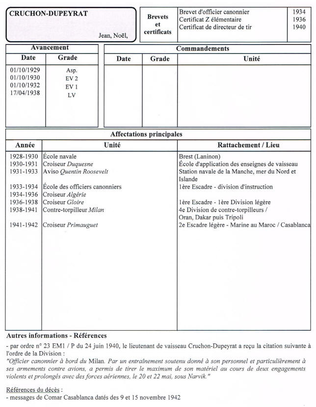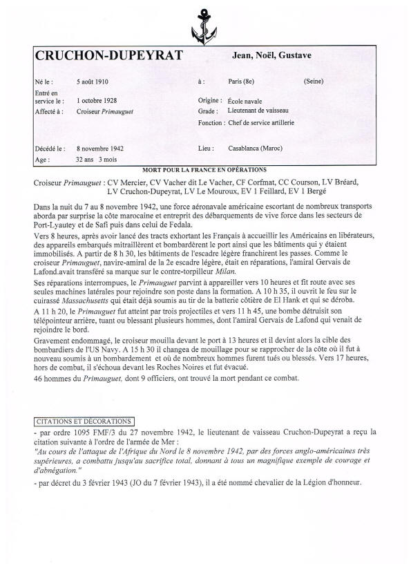 27 novembre 1942, le lieutenant de vaisseau Cruchon-Dupeyrat a reçu
