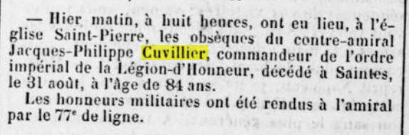 (Charente inférieure) - Décédé le 31 aout 1857 à Saintes (Charente