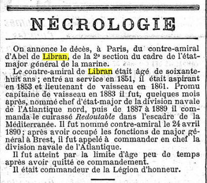 (nomination du 10 avril 1884); Commandant le croiseur à batterie