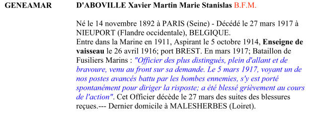 (Seine) - Décédé le 27 mars 1917 à NIEUPORT, BELGIQUE.