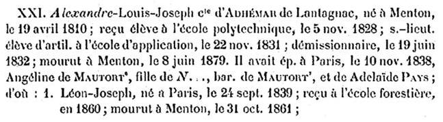 Né le 19 avril 1810 à MENTON (Alpes-Maritimes) - Décédé le 8 juin