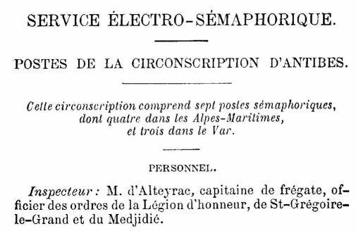 depuis le 2 décembre 1854), Inspecteur des électro-sémaphores à