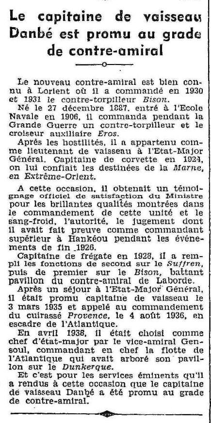 1ère escadrille de torpilleurs, 1ère Armée navale (Cdt Fernand FOSSEY).