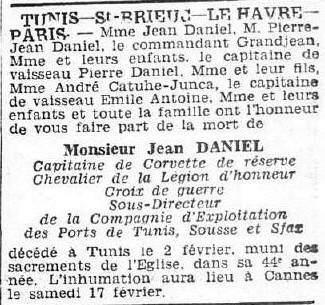 Décédé le 2 février 1934 à TUNIS (Tunisie)