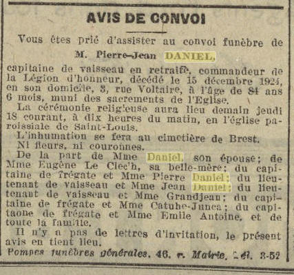 - Décédé le 15 décembre 1924 à BREST (Finistère)