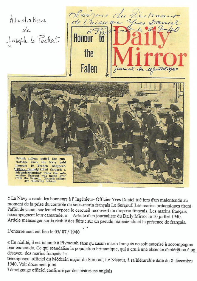 décembre 1940 du Médecin-Major Le Nistour du Surcouf sur l'évènement